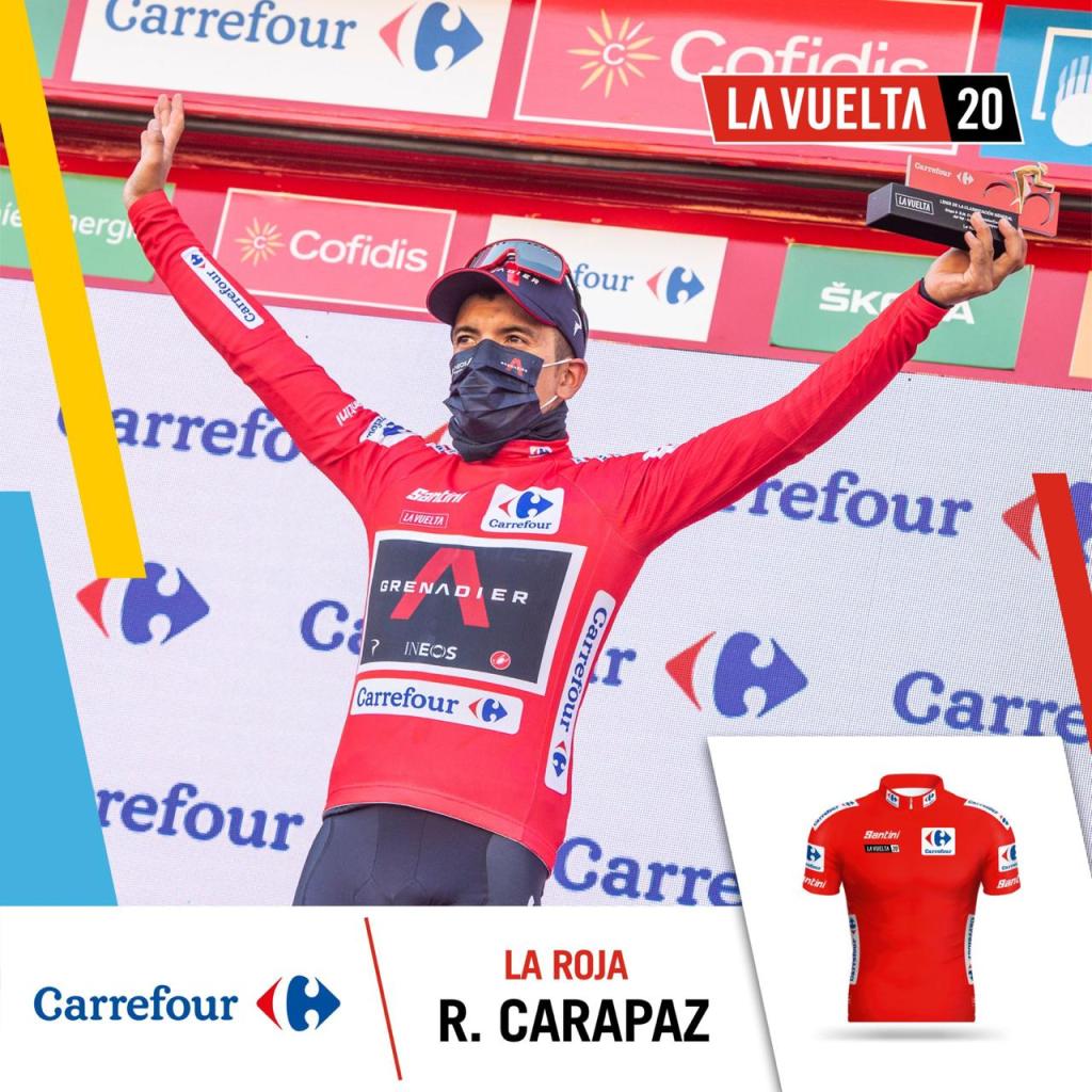 Hoy no hubo sobresaltos para el gran Richard Carapaz. Él sigue tranquilo con la camiseta roja de líder de la Vuelta a España. Hasta se pudiera decir que ya casi es parte de su piel. Son cinco días que la lleva puesta.