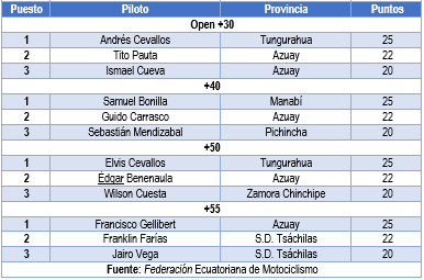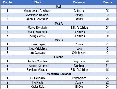 De esa manera controversial se registró la reapertura de las competencias del motocrós nacional. La segunda válida está programada para 22 de noviembre en Quito; mientras la tercera fecha se analiza la posibilidad de que sea en Cuenca, a mediados de diciembre.