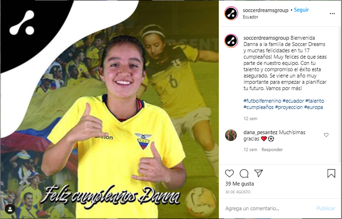 Con 17 años, la volante zurda firmó un contrato por dos años con Soccer Dreams Group. Ella integra la Selección Absoluta de Ecuador para los partidos amistosos ante Brasil.
