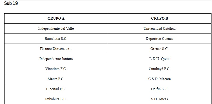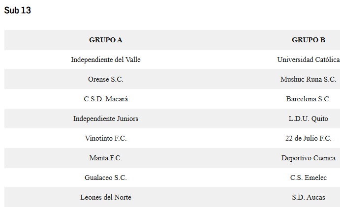 El equipo Sub 19, líder de la primera fase, debutará este sábado ante Delfín por la segunda etapa y será en Portete. Los Sub 13, 15 y 17 también lo harán en Guayaquil y Manta.