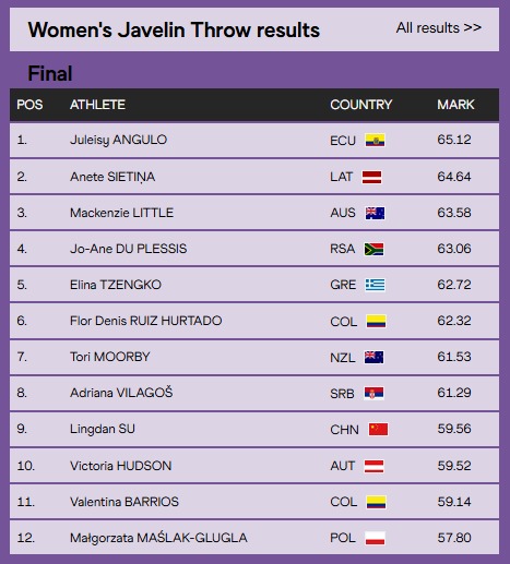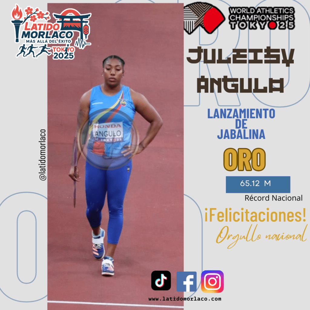 Angulo, quien nació en Machala el 2 de enero del 2001 (tiene 24 años) y practica atletismo desde los 11 años, se proclamó campeona mundial en la prueba de lanzamiento de la jabalina. La madrugada del sábado 20 de septiembre, en horario ecuatoriano, nuestra compatriota sorprendió a propios y extraños, registrando una marca de 65 metros con 12 centímetros.
