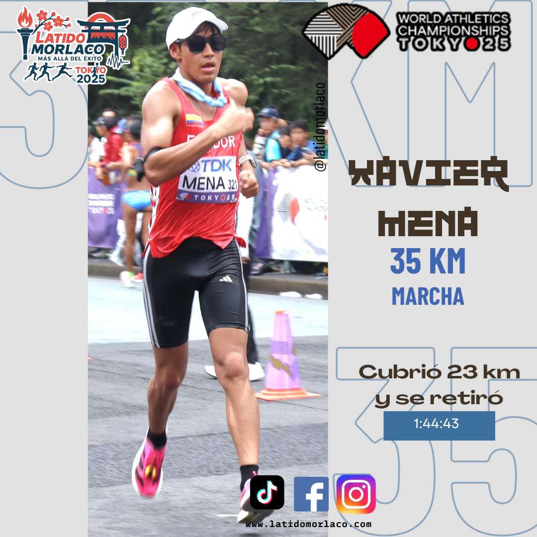 El marchista lojano Jordy Jiménez permaneció cerca de la mitad de la prueba de 20 km con el grupo puntero. Porterior, el calor sofocante empezó hacer efecto y se fue quedando. No obstante, Jordy ingresó triunfante por la pista sintética del estadio Nacional de Tokio. Él y Hurtado tuvieron a 46 rivales