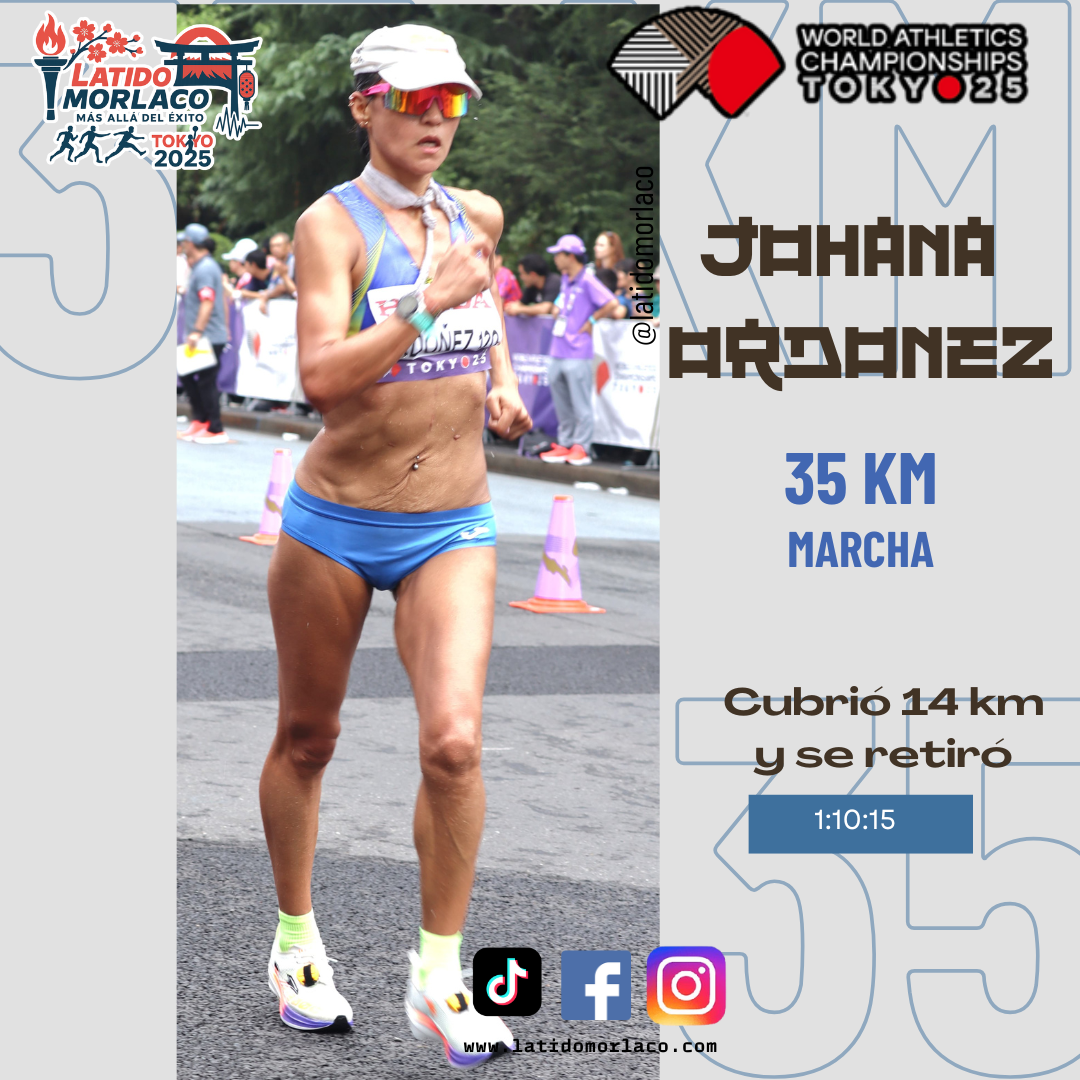 La andarina imbabureña Karla Jaramillo hizo su máximo esfuerzo por ubicarse en una posición expectante y cruzó la meta de los 35 kilómetros en el puesto 23. Tuvo a 46 rivales, entre ellas a tres compatriotas.