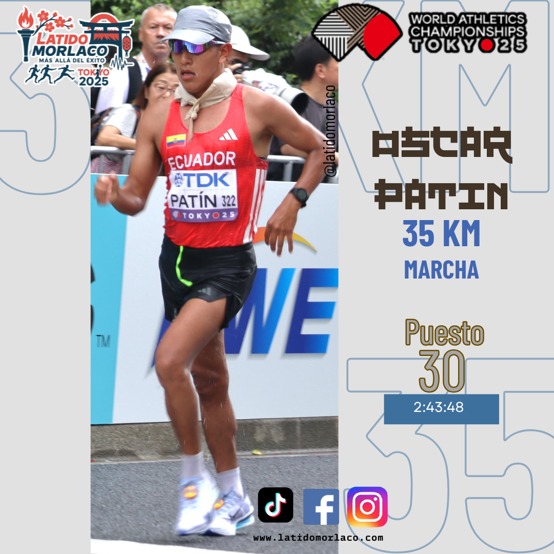 Óscar Patin, de Bolívar, terminó en el puesto 30 de la clasificación general de los 35 km. Entre tanto, Johana Ordóñez y Javier Mena abandonaron la competencia en los kilómetros 14 y 21, respectivamente.