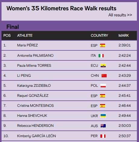 Después de superar a la china Li Peng en los últimos metros, Paula se quedó con la medalla de bronce, detrás de la española María Pérez y la italiana Antonella Palmisano.