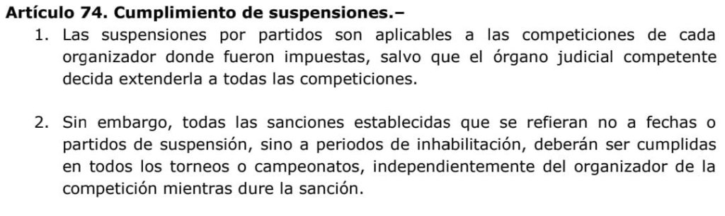 A TOMAR EN CUENTA Artículo 74 del Código Disciplinario de la FEF