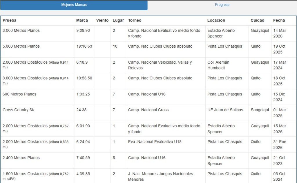 Erick Patricio tiene 16 años, pero es el número 1 de Ecuador en la prueba de 2.000 metros con obstáculos en la categoría Sub 18.